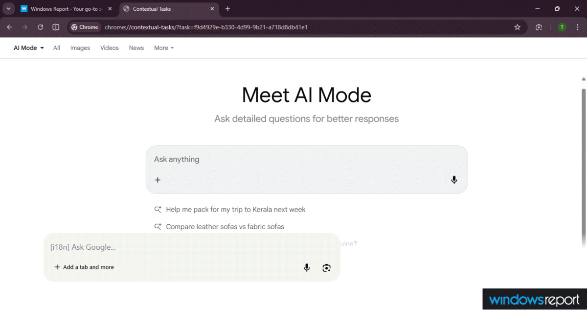 12 月 9 日消息,据科技媒体 Windows Report 今天报道,谷歌 Chrome 浏览器正在测试新版 AI 模式,其工作方式与当前版本截然不同,可直接在浏览器内部打开一个原生的 AI 界面,用于处理问答、文件、图片等。