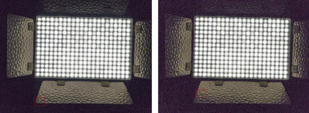 在保证照片曝光参数(光圈、快门、ISO 组合)相同的情况下,提高 ISO 就会减少进光量,从而导致信噪比下降,而最暗的地方会最先受到影响,所以暗部细节丢失,高光部分不变。