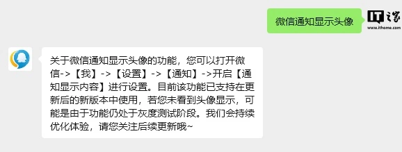 《微信通知可显示好友头像:苹果 iOS 版已开启灰度测试》