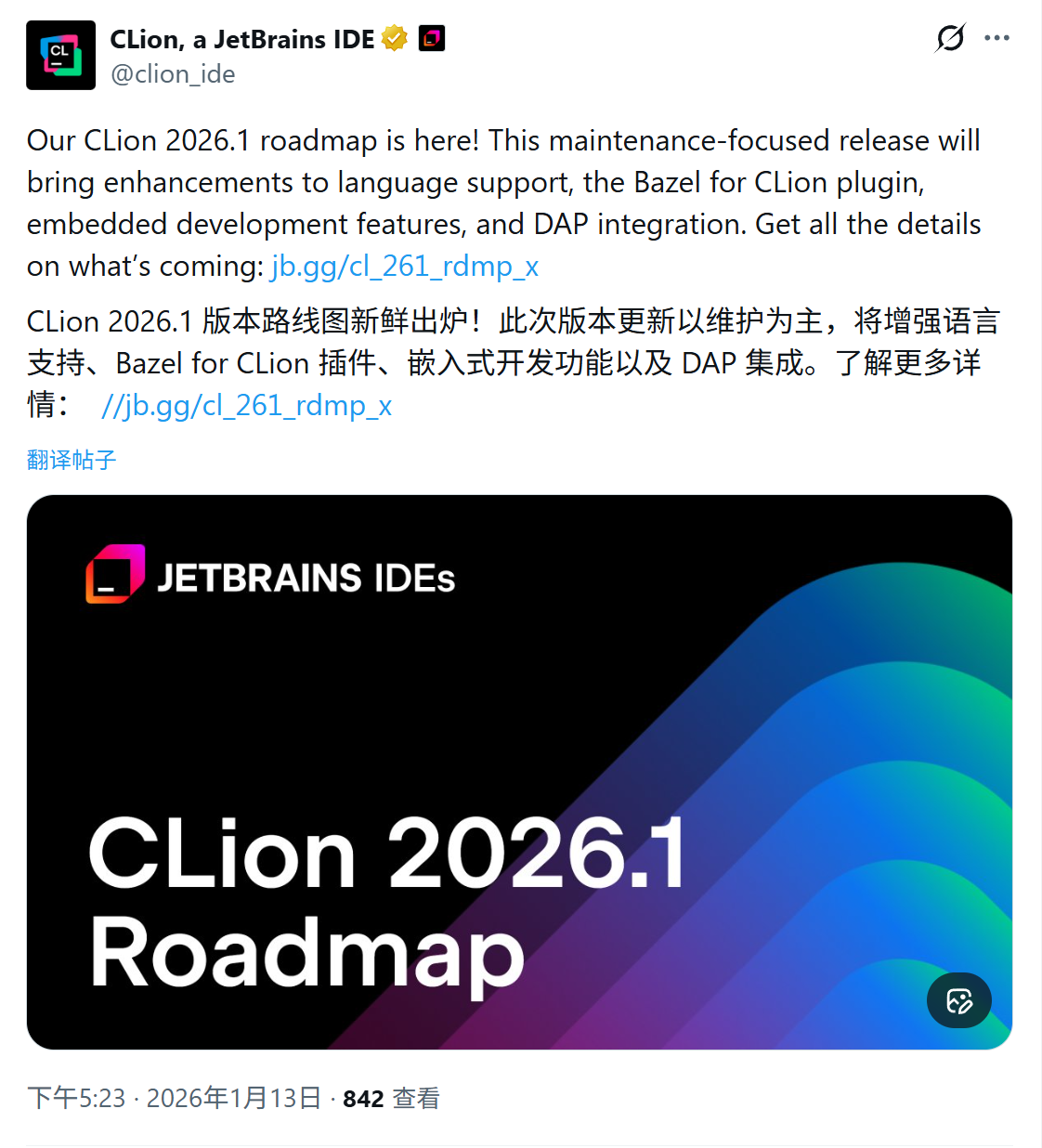 1 月 14 日消息,JetBrains 昨日(1 月 13 日)发布公告,披露了 CLion 2026.1 的开发路线图,这是 C/C++ 集成开发环境在 2026 年的首个重大更新,预计将于 3 月正式推出。