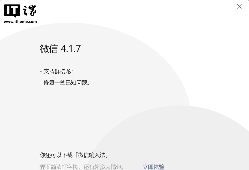 此外,微信 Windows PC 电脑内测版4.1.7.18更新于今日(1 月 19 日)发布,更新内容为: