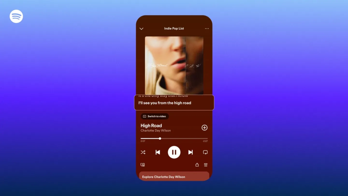 与此同时,Spotify 还在全球上线歌词预览功能。该功能会在歌曲标题和专辑封面之间显示一段精简歌词,让用户无需进入全屏歌词界面,也能快速浏览歌词内容。