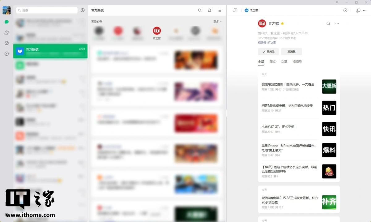 - 在聊天窗口旁扩展了浏览区域,公众号、笔记、链接等内容会在该区域内打开