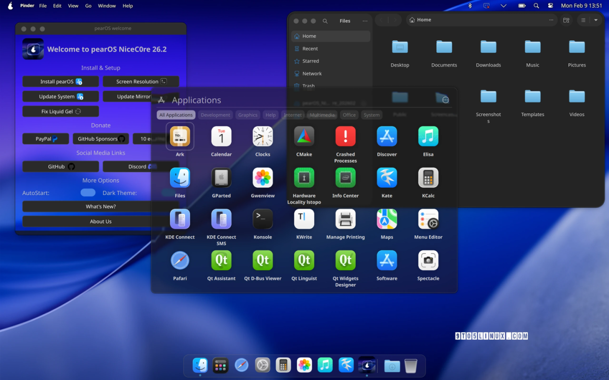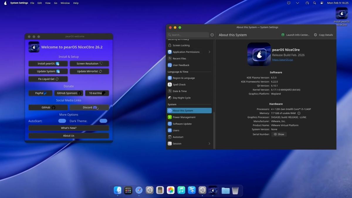 2 月 10 日消息,科技媒体 9to5Linux 昨日(2 月 9 日)发布博文,报道称基于 Arch Linux 构建的 pearOS 26.2 发行版已发布,深度整合 KDE Plasma 桌面环境,并全面启用“液态凝胶”(liquid gel)设计语言。
