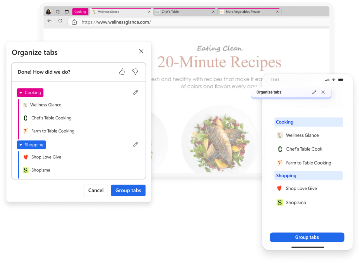 重度用户日常使用过程中,常在 Edge 浏览器中同时开启数十个标签页,导致信息检索困难。微软针对该痛点,推出基于 AI 的标签页整理功能(AI Tab Organizer)。