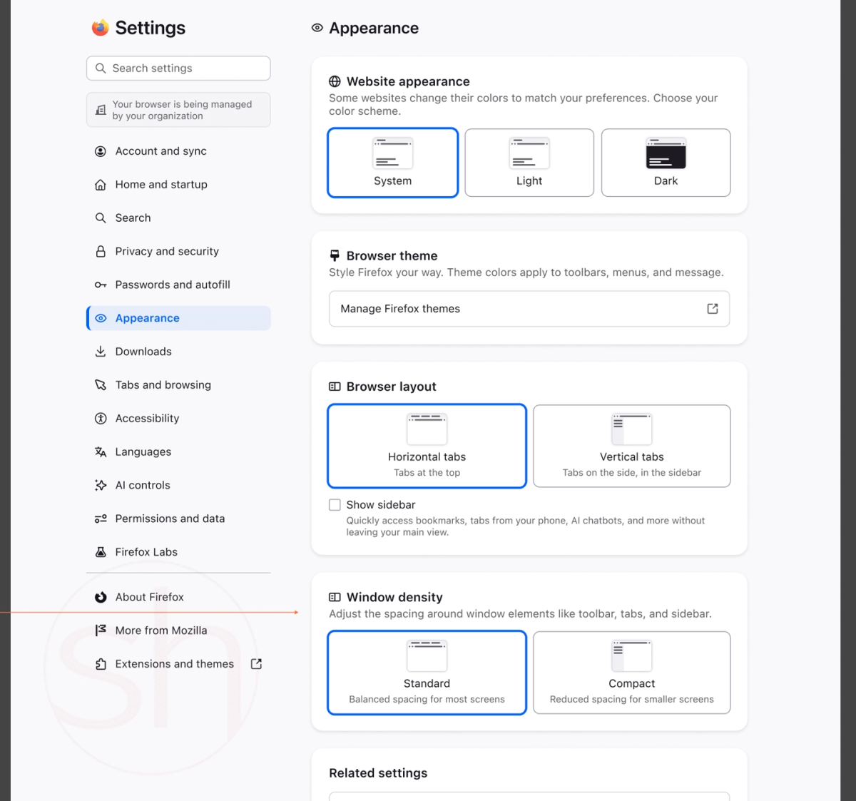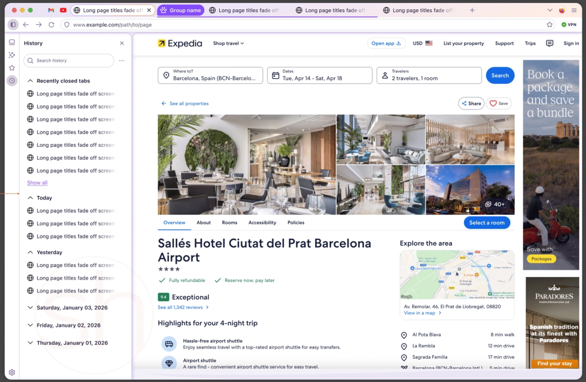 在布局方面,用户放弃传统的水平布局并激活垂直标签页功能后,其界面呈现出类似于 The Browser Company 旗下 Arc 浏览器的紧凑视觉效果。