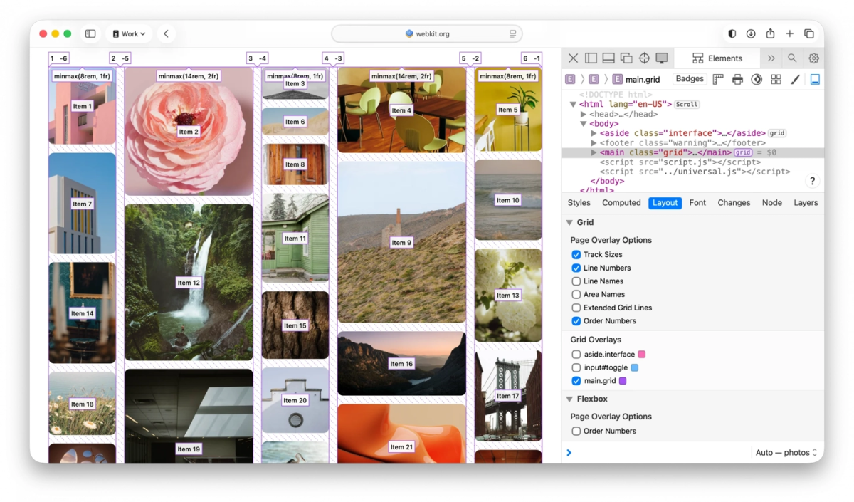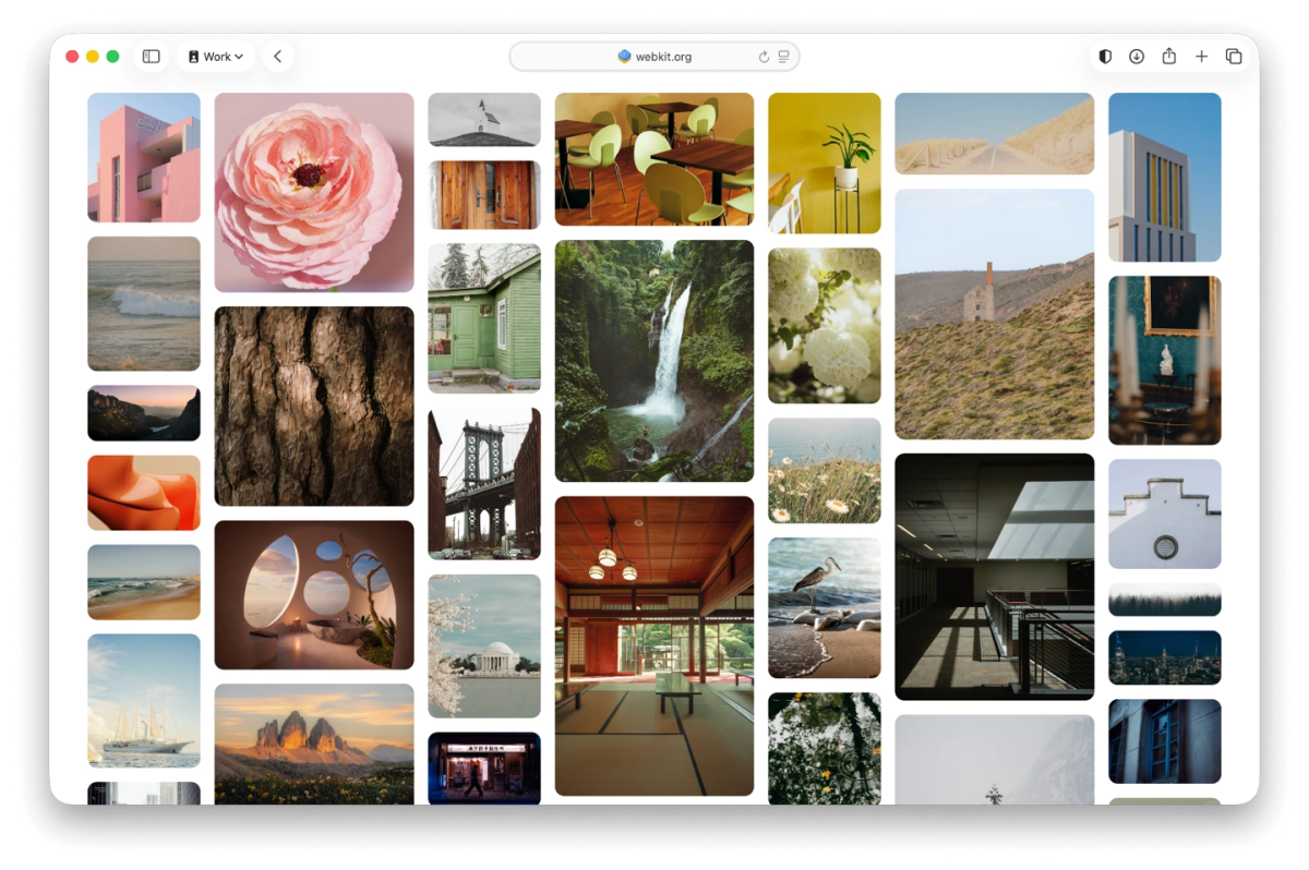 在新功能方面,重点引入了 CSS Grid Lanes(CSS 网格轨道)技术。该技术为开发者构建复杂的视觉画廊和高级网页排版,提供了一个完美解决方案。