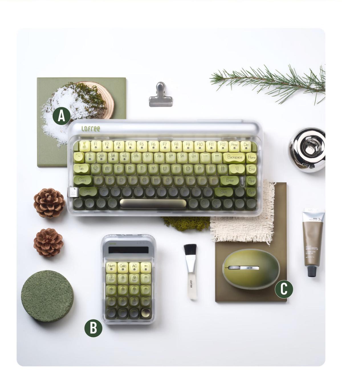 通过公开网络渠道确认,这其中将包括 DOT | 432Hz 机械键盘、DIGIT | 432Hz 数字区小键盘、PUDDING | 432Hz 鼠标,整体采用极地苔原配色。