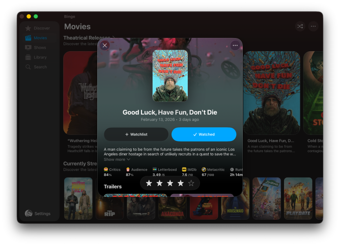 据开发者希哈布 · 迈布布介绍,Binge 的目标是成为一站式影视追踪平台,涵盖电影、剧集、影视合集、演员、流媒体平台、电视台乃至制作公司的追踪服务。