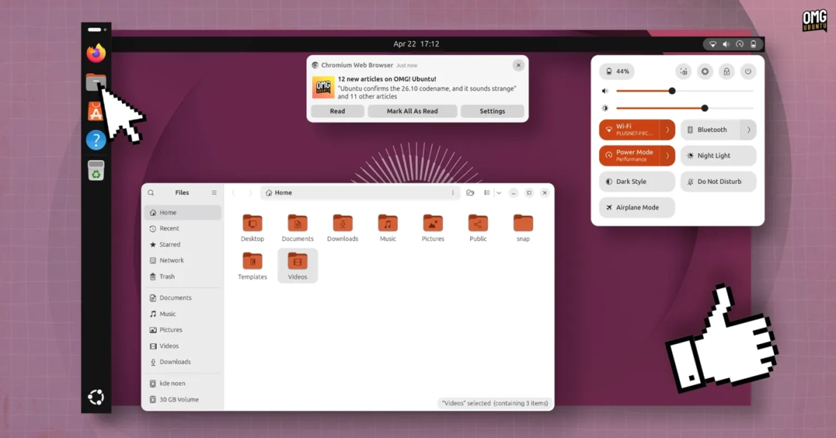 桌面环境方面,Ubuntu 26.04 LTS 升至 GNOME 50,默认开启可变刷新率(VRR),并提升文件管理器 Nautilus 响应速度,界面方面采用更高对比度设计与统一圆角风格。