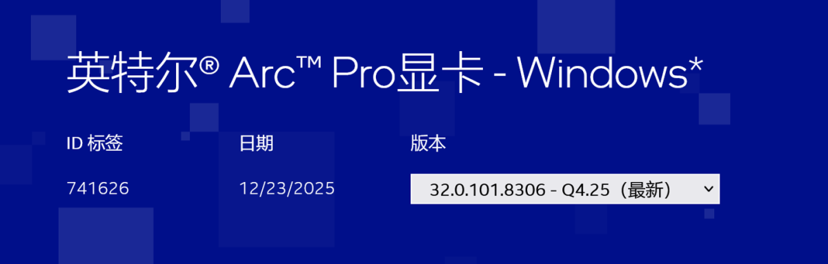 12 月 25 日消息,英特尔本月 23 日推出了 2025Q4 版本的锐炫 Arc Pro 专业显卡驱动,版本号升级至 32.0.101.8306。