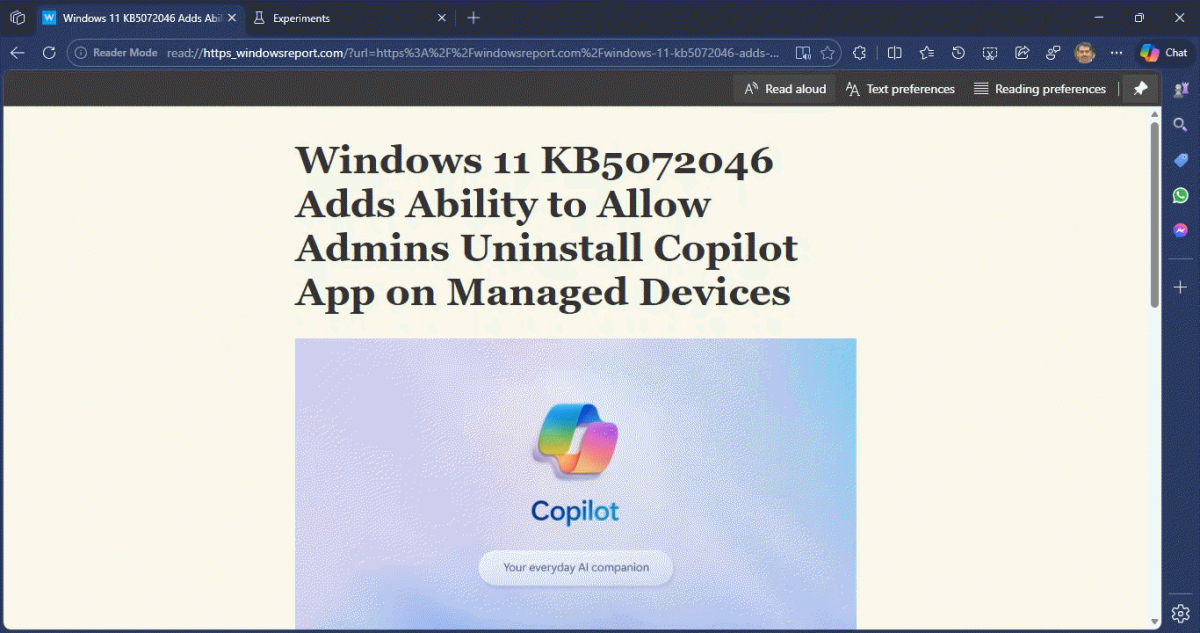 1 月 10 日消息,科技媒体 Windows Report 今天(1 月 10 日)发布博文,报道称在 Canary 频道最新 Microsoft Edge 浏览器版本中,微软正尝试重大改动:让 Copilot 全面接管“沉浸式阅读器”(Immersive Reader)工具栏。