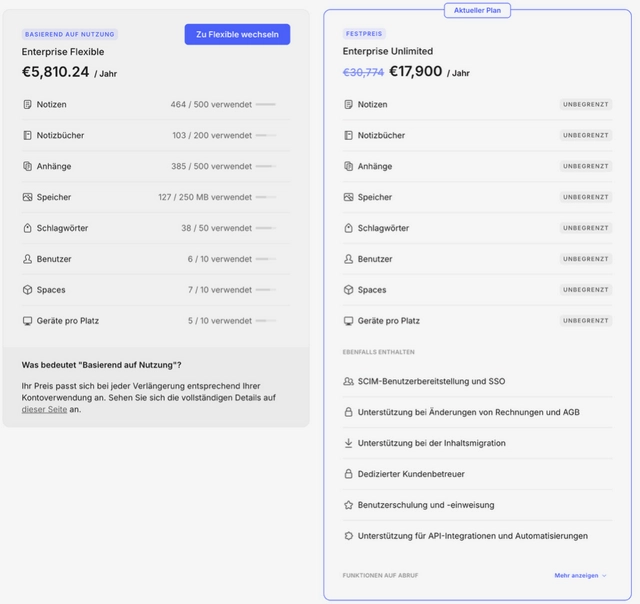 即便用户手动降级至按用量计费的“灵活版”,年费仍高达 5810.24 欧元(现汇率约合 47383 元人民币),相比原价格涨幅依然达到 384.21%。