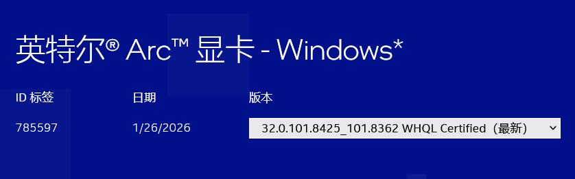 1 月 27 日消息,英特尔当地时间 26 日正式发布了 32.0.101.8425 与 32.0.101.8362 版本 WHQL 认证锐炫显卡驱动程序。