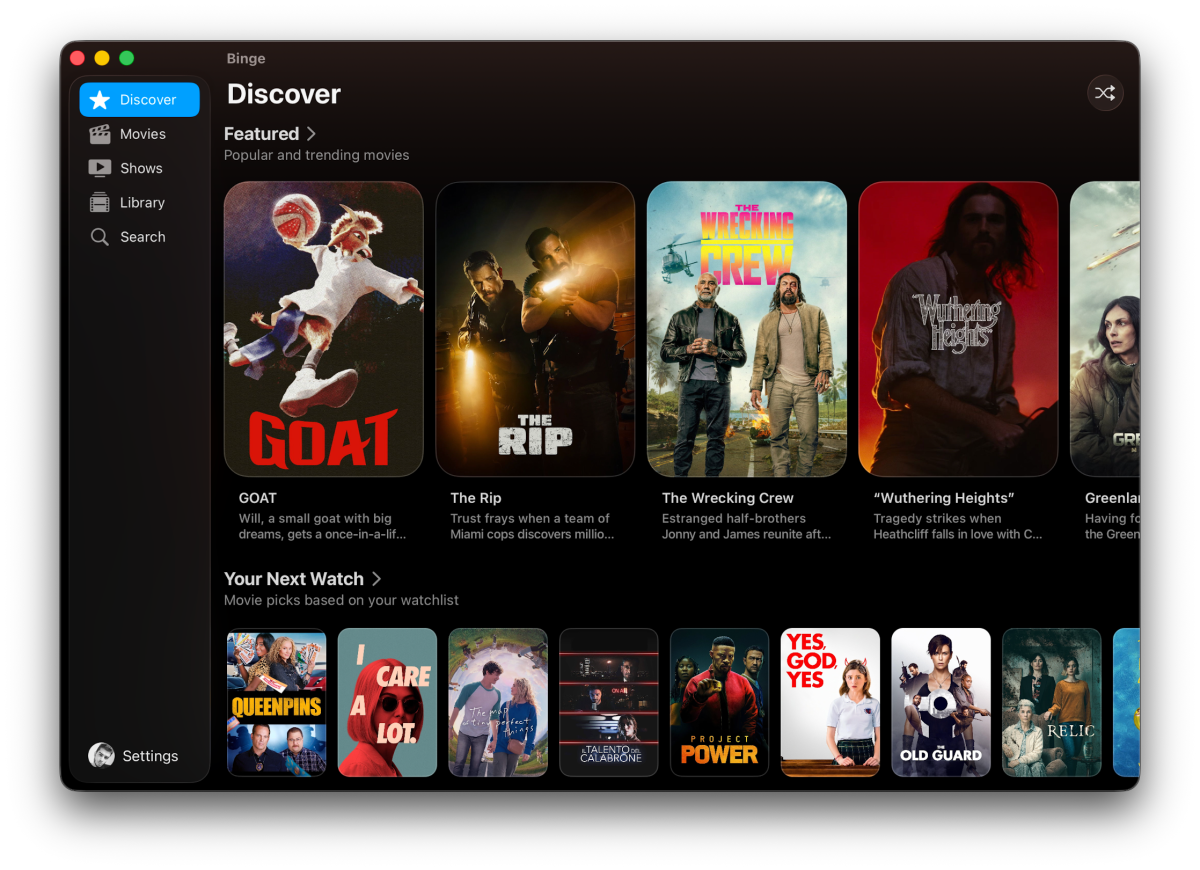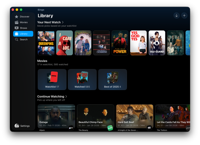 据开发者希哈布 · 迈布布介绍,Binge 的目标是成为一站式影视追踪平台,涵盖电影、剧集、影视合集、演员、流媒体平台、电视台乃至制作公司的追踪服务。